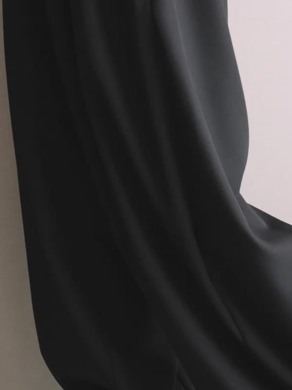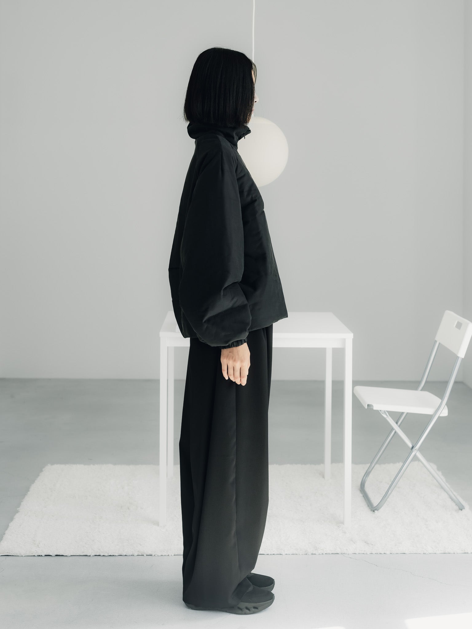 動くたびに陰影が生まれ、上品さとモード感を両立したシルエットに仕上げています。